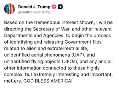 Now, the government is saying they will start releasing information they have on alien life. While I could write a lot about aliens and what my thoughts are, the truth is that this is a major attention grab on behalf of Trump.